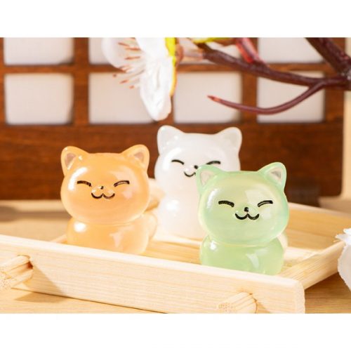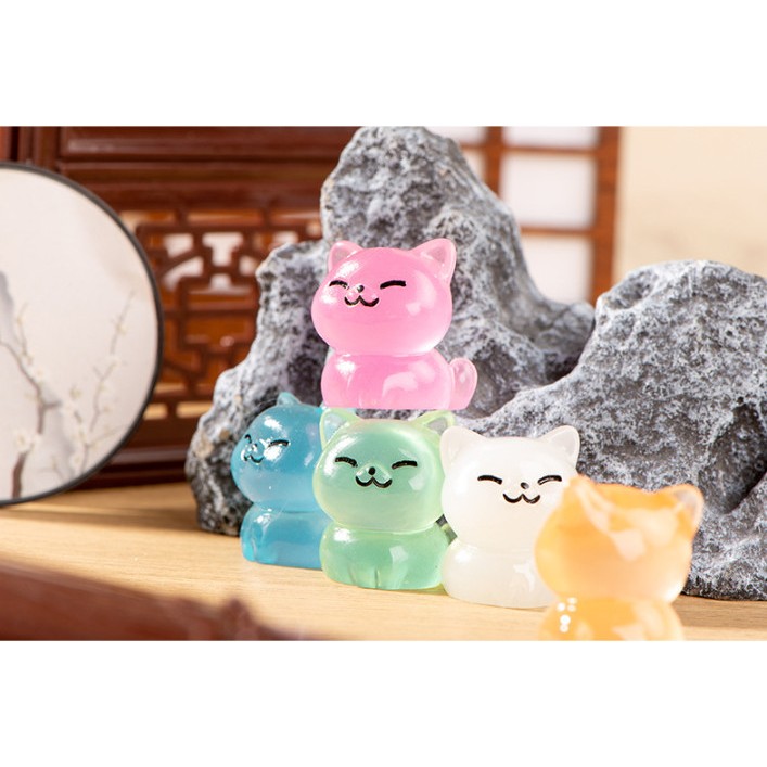 Charm dạ quang tượng mèo béo phát sáng dễ thương để bàn, decor terrarium