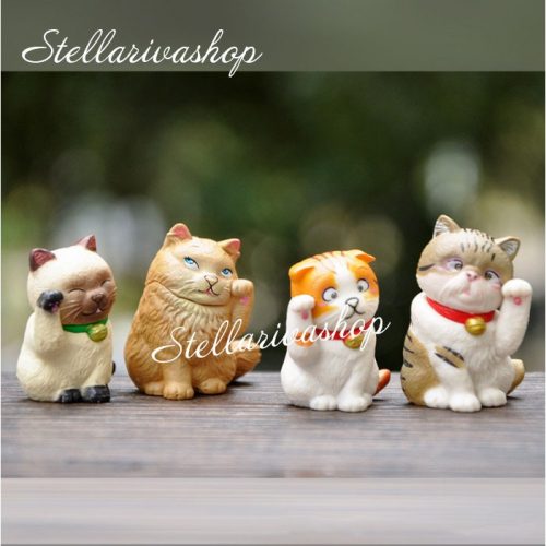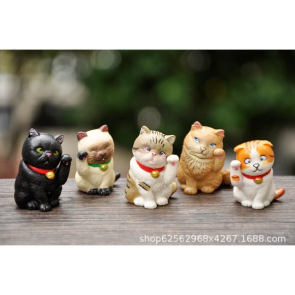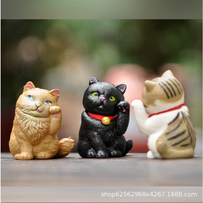 Full bộ 5 tượng mèo gọi khách decor bàn học trang trí terrarium