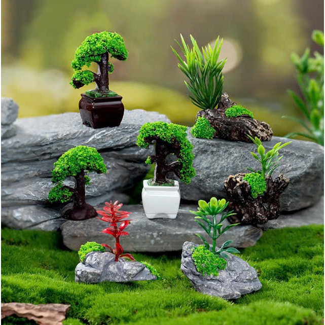 Mô Hình các loại cây xanh bonsai làm tiểu cảnh, mô hình trang trí nhà búp bê, doll house, trang trí sen đá, stellariva