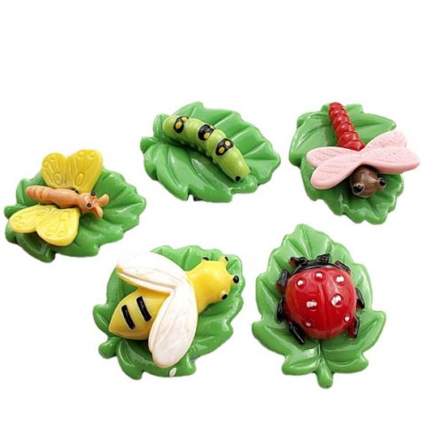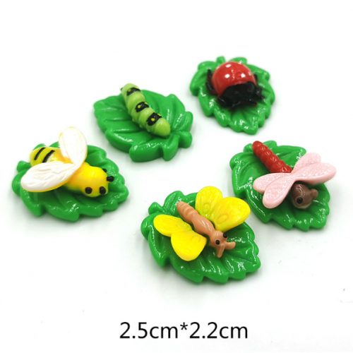 Mô hình con ong, bọ, chuồn chuồn nằm trên lá cây giả trang trí tiểu cảnh, decor cây