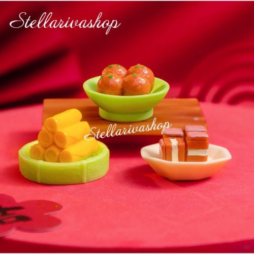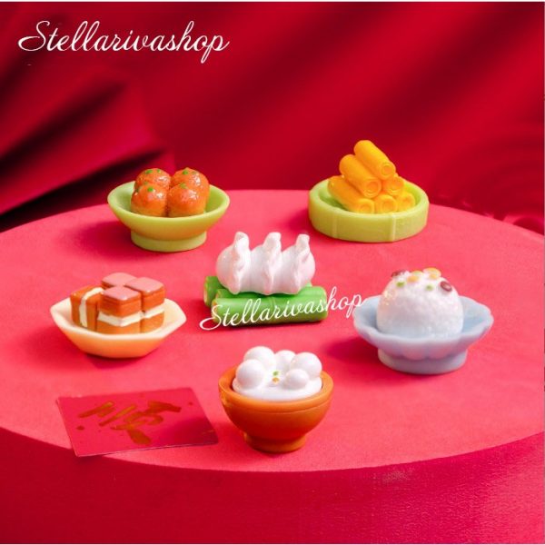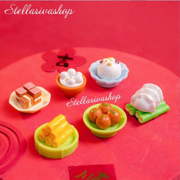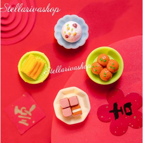 Mô hình đĩa thức ăn bánh xếp, thịt kho, chè decor tiểu cảnh tết, nhà dollhouse, stellariva