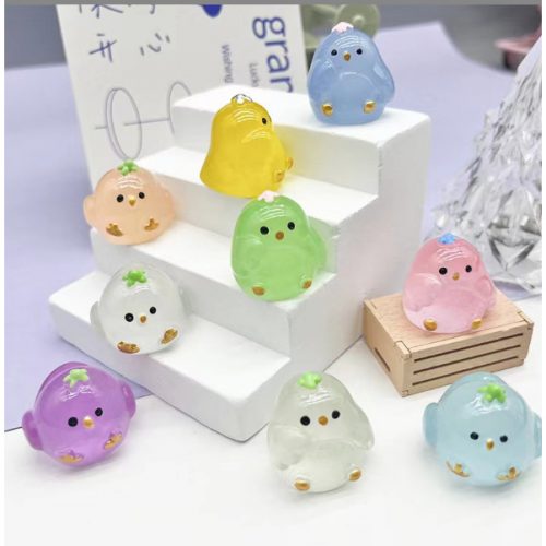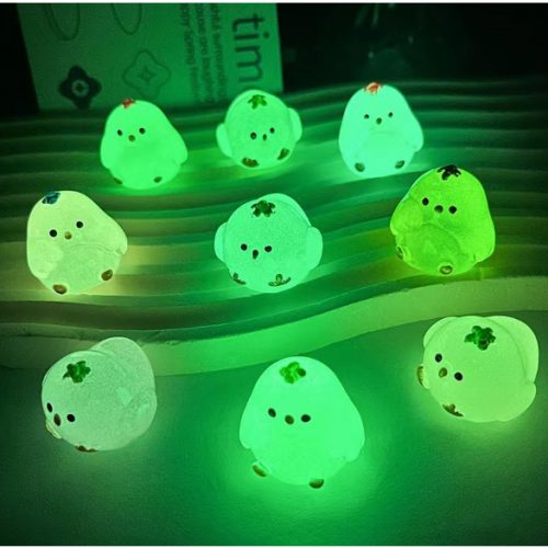 Mô hình gà béo đội lá dạ quang nhiều màu phát sáng trang trí nhà búp bê, DIY