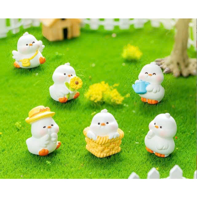 Mô hình gà trắng vui vẻ trang trí tiểu cảnh, decor bàn, stellarivashop