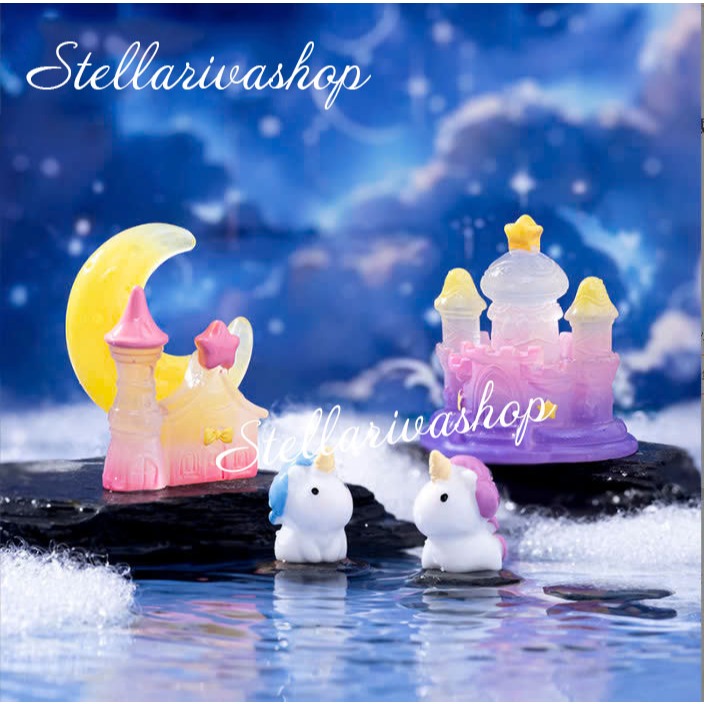 Mô hình lâu đài dạ quang, phát sáng trong đêm decor bàn học, trang trí terrarium