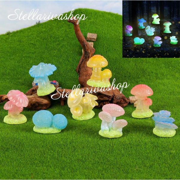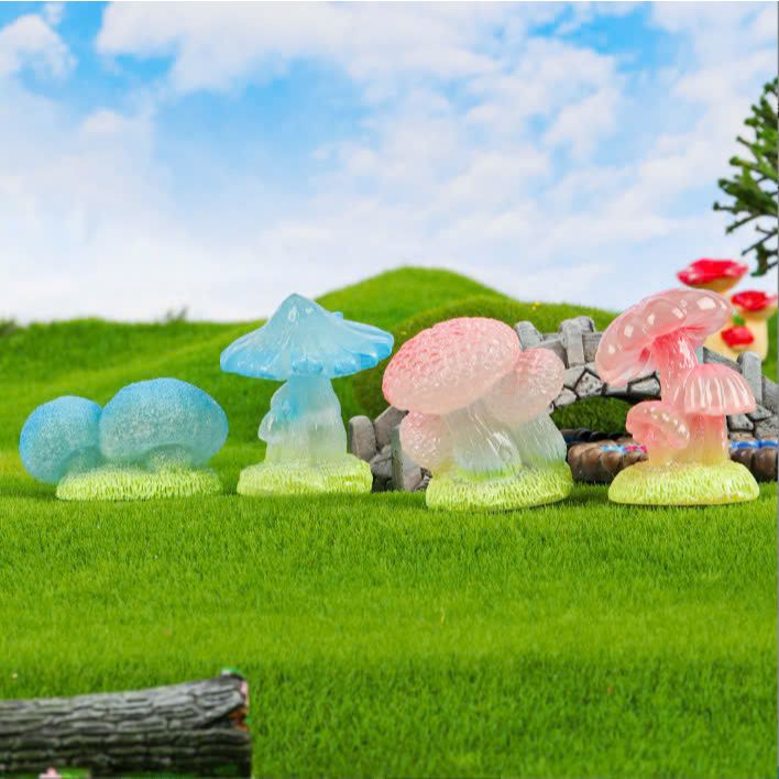 Mô hình nấm nhỏ dạ quang dễ thương decor terrarium, trang trí chậu cây