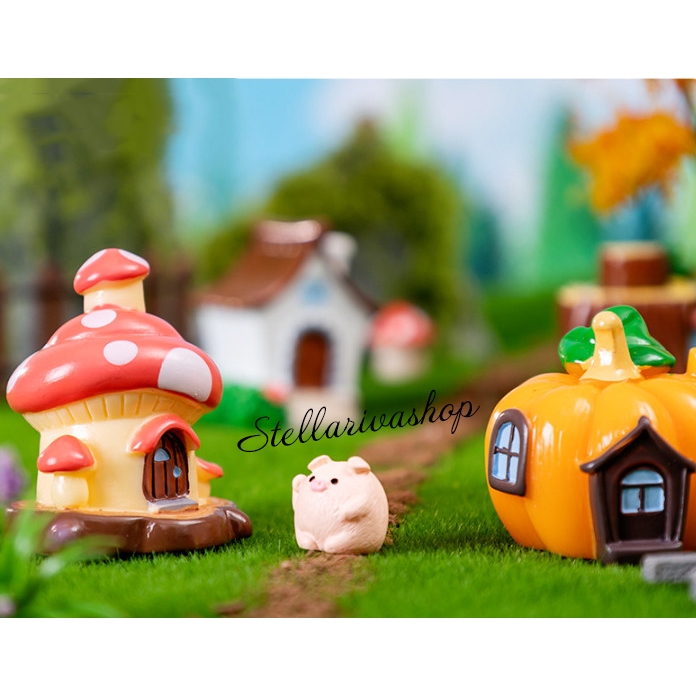 Mô hình nhà cổ tích, nhà bí ngô, nhà nấm, nhà gốc cây decor terrarium, trang trí tiểu cảnh