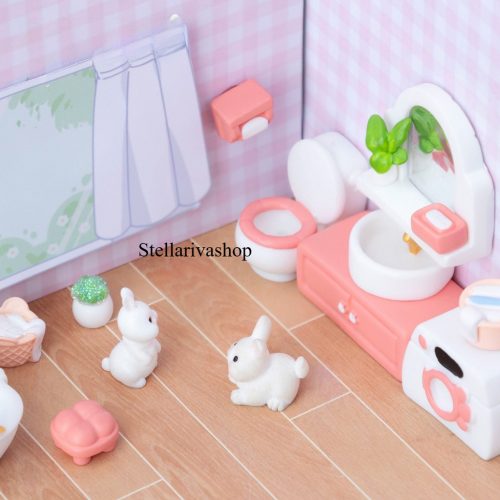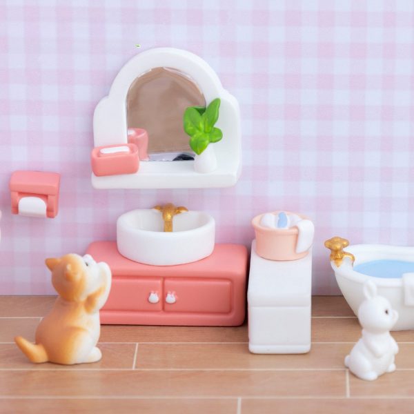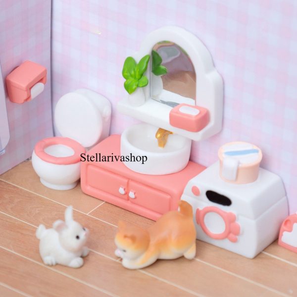 Mô hình nội thất phòng tắm nhà vệ sinh màu hồng trang trí nhà búp bê