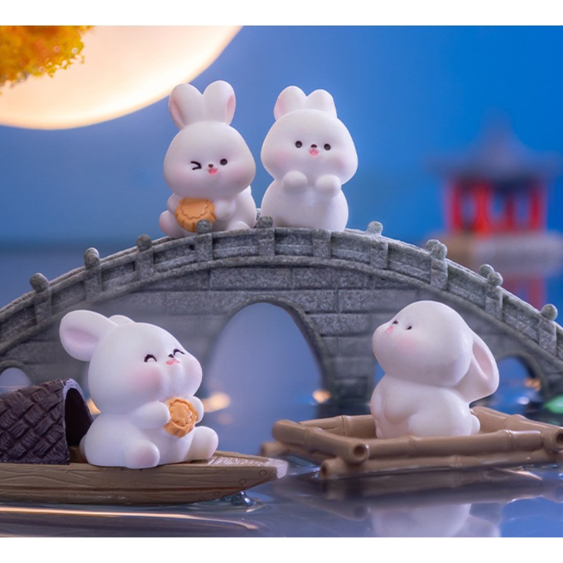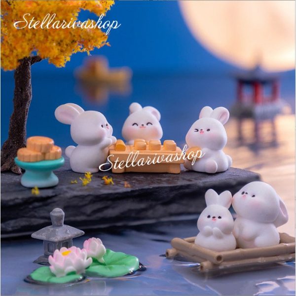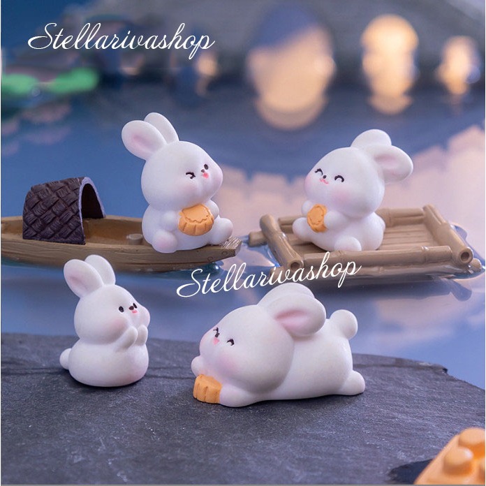 Mô hình thỏ trắng mừng lễ trung thu decor terrrarium, trang trí vườn, stellariva