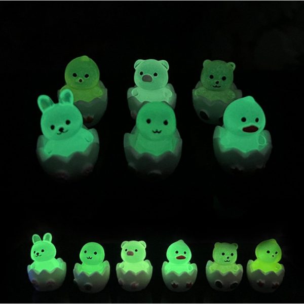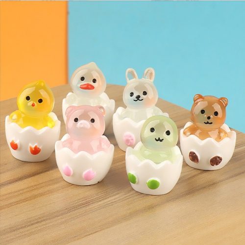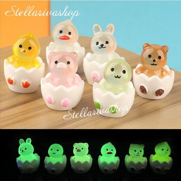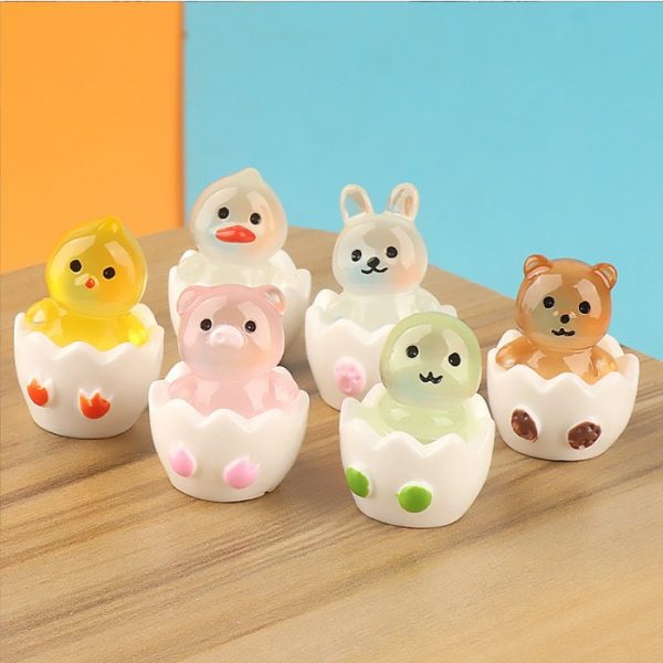 Mô hình vịt con, thỏ con, gấu con, rắn con, heo con trong vỏ trứng, dạ quang phát sáng trang trí nhà búp bê, DIY