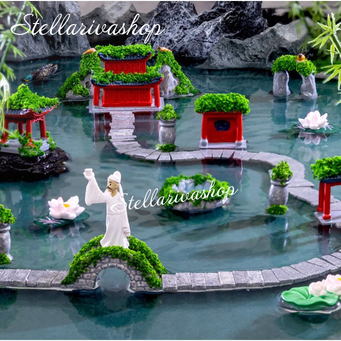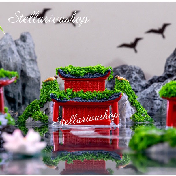 Mô hình vọng nguyệt lâu, cảnh vật mùa xuân decor terrrarium, trang trí vườn