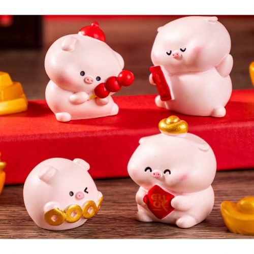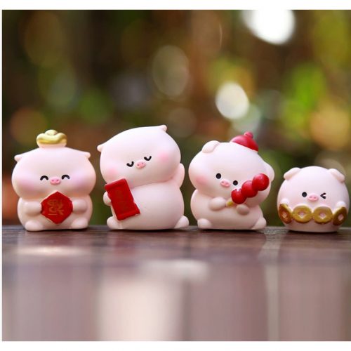 Mô hình set 4 heo thần tài may mắn trang trí tiểu cảnh, terarium, bàn học, taplo, stellariva