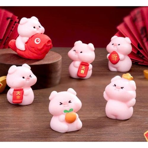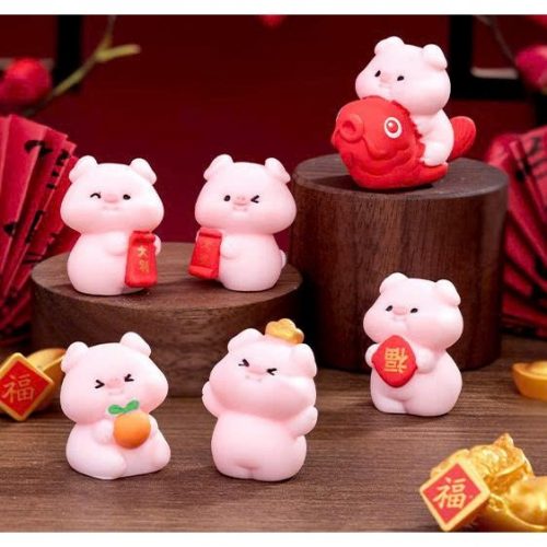 Mô hình set 6 heo thần tài béo ú trang trí tiểu cảnh, terarium, bàn học, taplo, stellariva