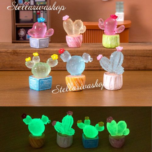 Tượng chậu xương rồng dạ quang phát sáng trong đêm decor bàn, terrarium, stellariva