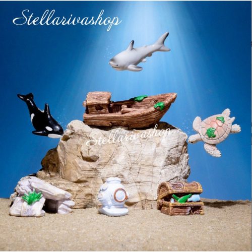 Tượng cá, thuyền bè, rương vàng decor bể cá, trang trí terrarium, stellariva