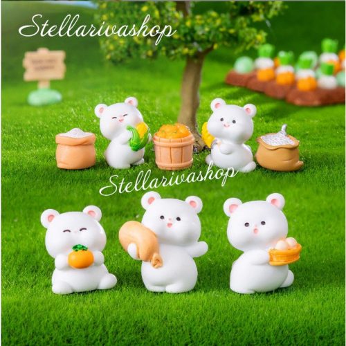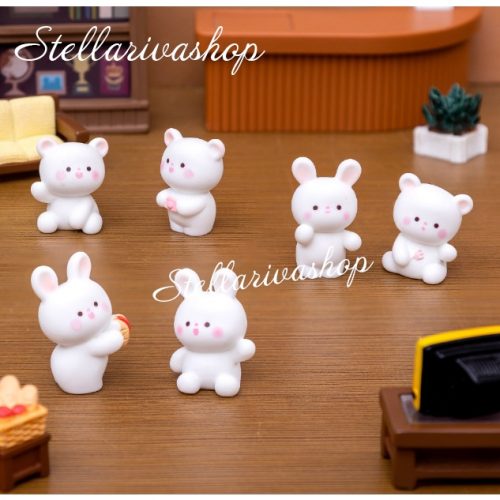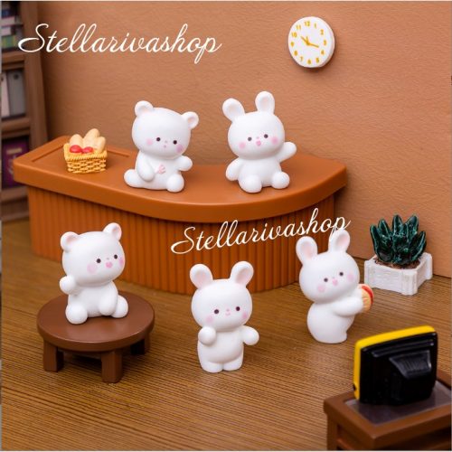 Tượng gấu thỏ trắng decor tiểu cảnh, terrarium, trang trí bàn học, stellariva