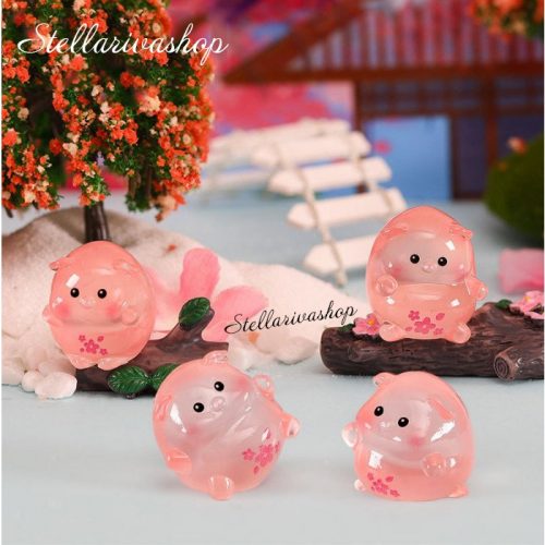 Tượng heo hồng phát sáng bụng anh đào dạ quang decor bàn học bàn làm việc, stellariva