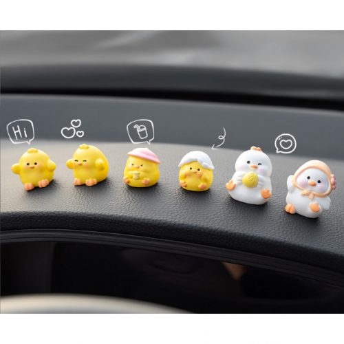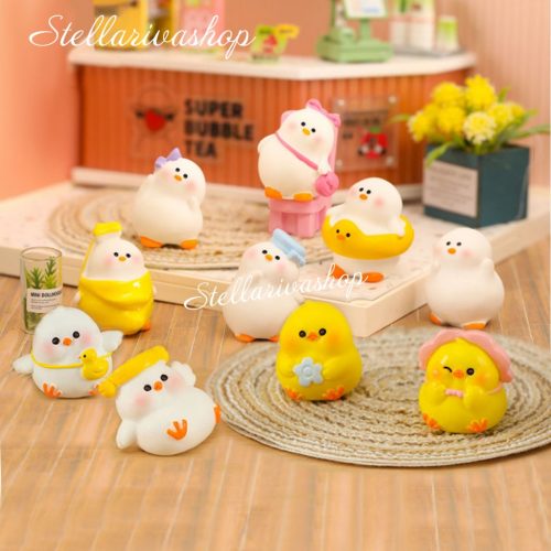 Tượng gia đình gà trắng vàng dễ thương trang trí bàn, decor kệ sách, stellariva