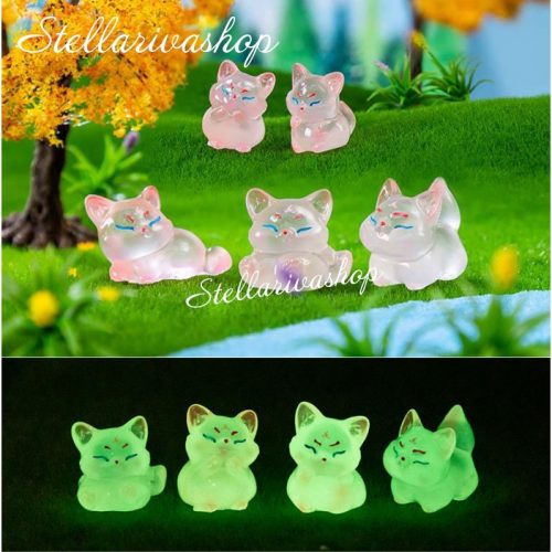 Tượng hồ ly hồng dạ quang, decor tiểu cảnh, trang trí bàn học, stellariva