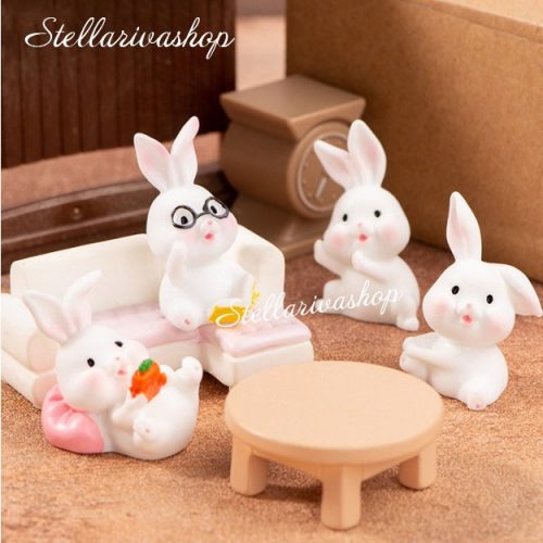 Tượng gia đình thỏ trắng decor tiểu cảnh, trang trí bàn, stellariva
