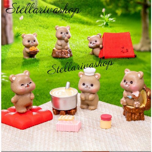 Tượng nhà gấu đi cắm trại decor bàn, trang trí tiểu cảnh, stellariva