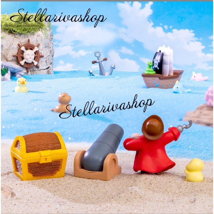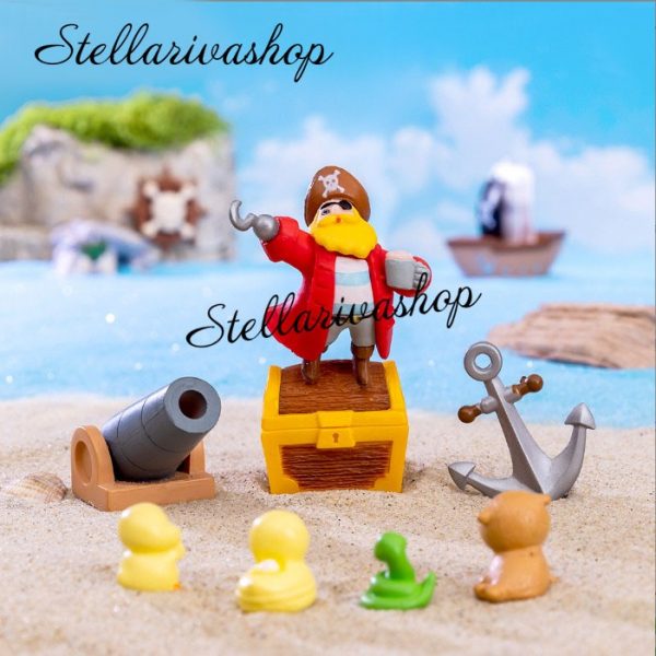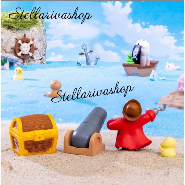 Set hải tặc 6 món decor bàn học, trang trí hồ cá [ có clip thật ]