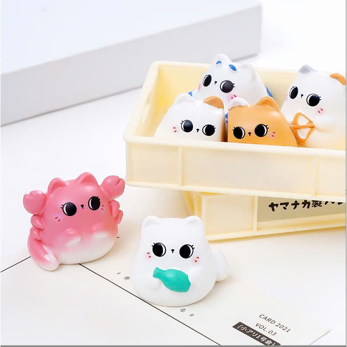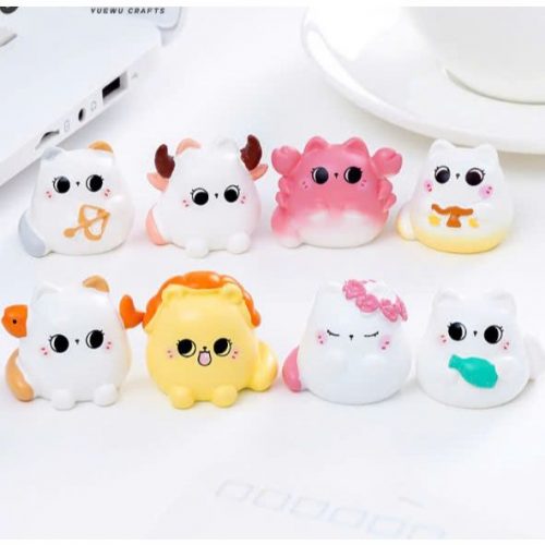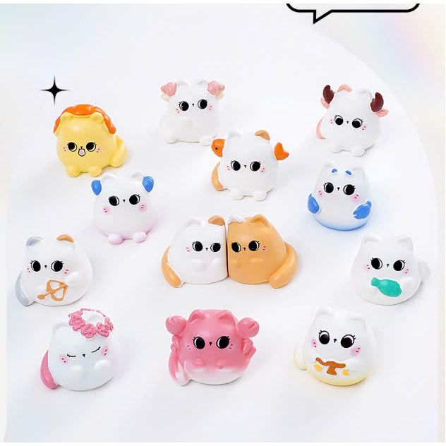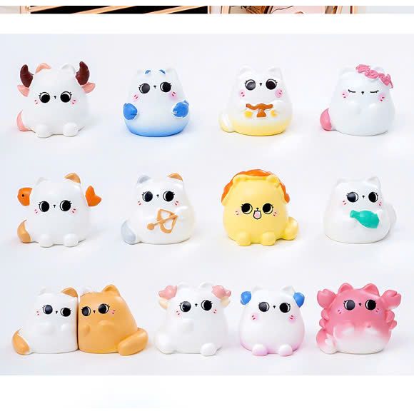 Tượng 12 mèo hoàng đạo mắt to mini dễ thương decor bàn
