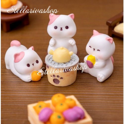 Tượng bé mèo vàng dễ thương trang trí tiểu cảnh, nhà búp bê