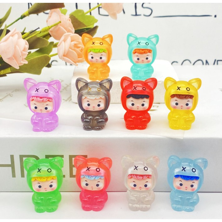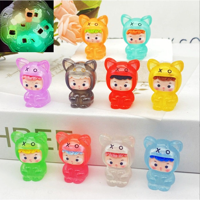 Tượng bé trai mặc áo X O dạ quang decor bàn