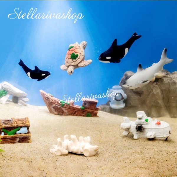 Tượng cá, thuyền bè, rương vàng decor bể cá, trang trí terrarium
