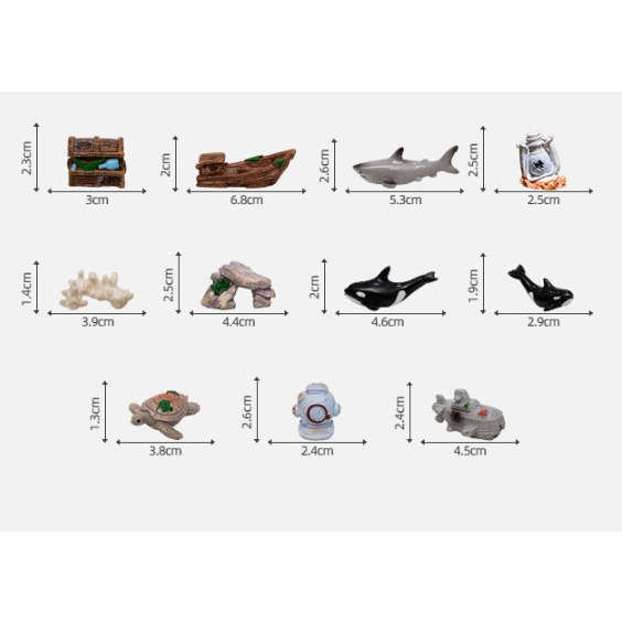 kích thước như hình, mô hình mini kích thước như hình, phù hợp với bể cá nhỏ