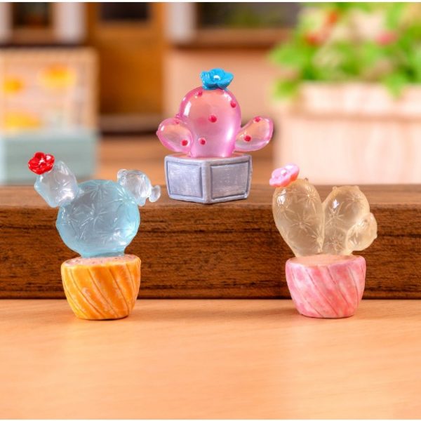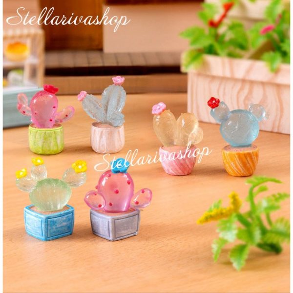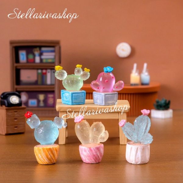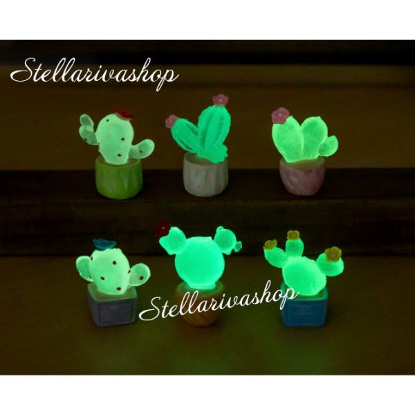 Tượng chậu xương rồng dạ quang phát sáng trong đêm decor bàn, terrarium