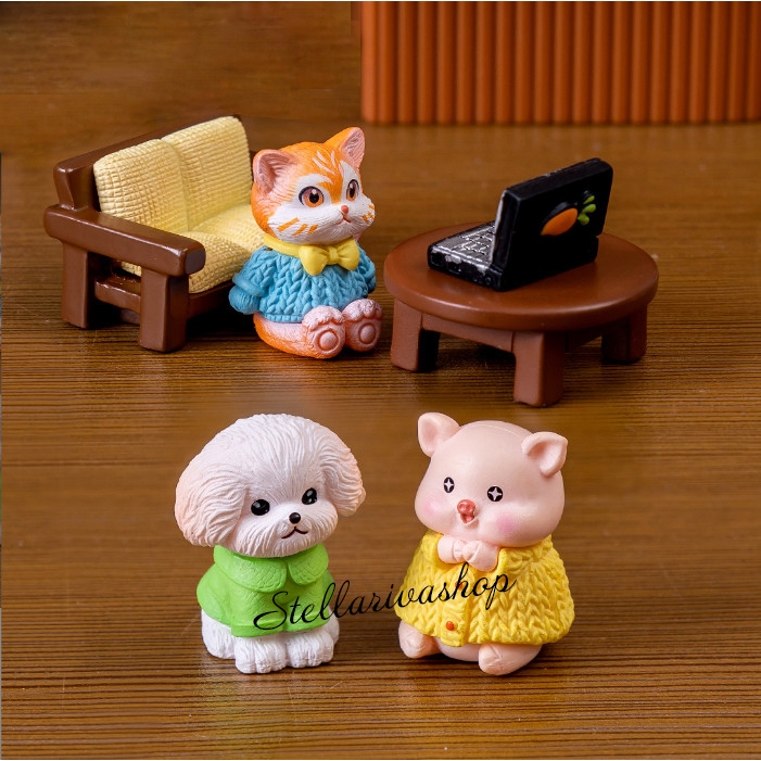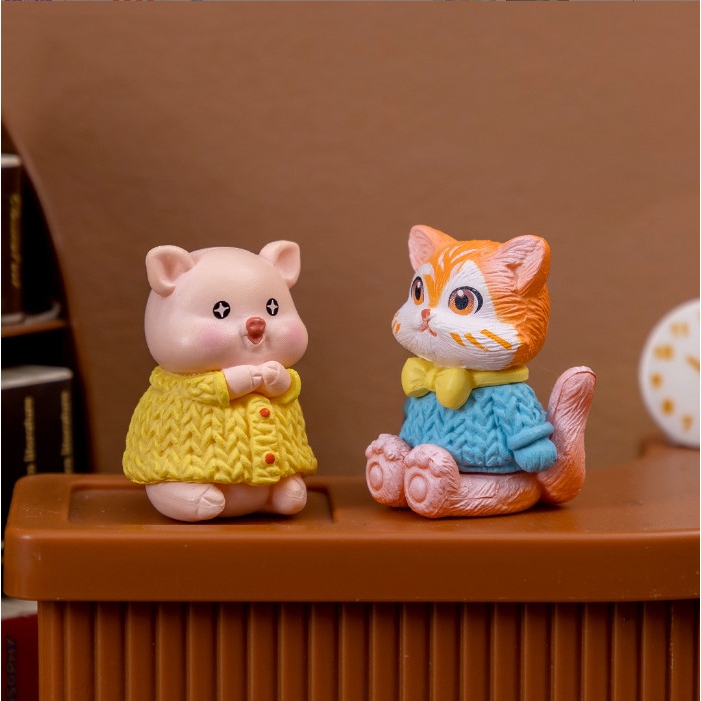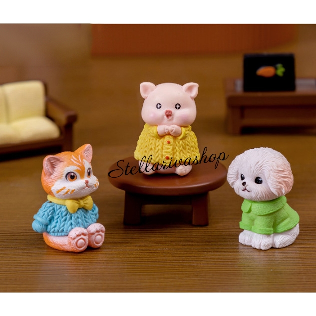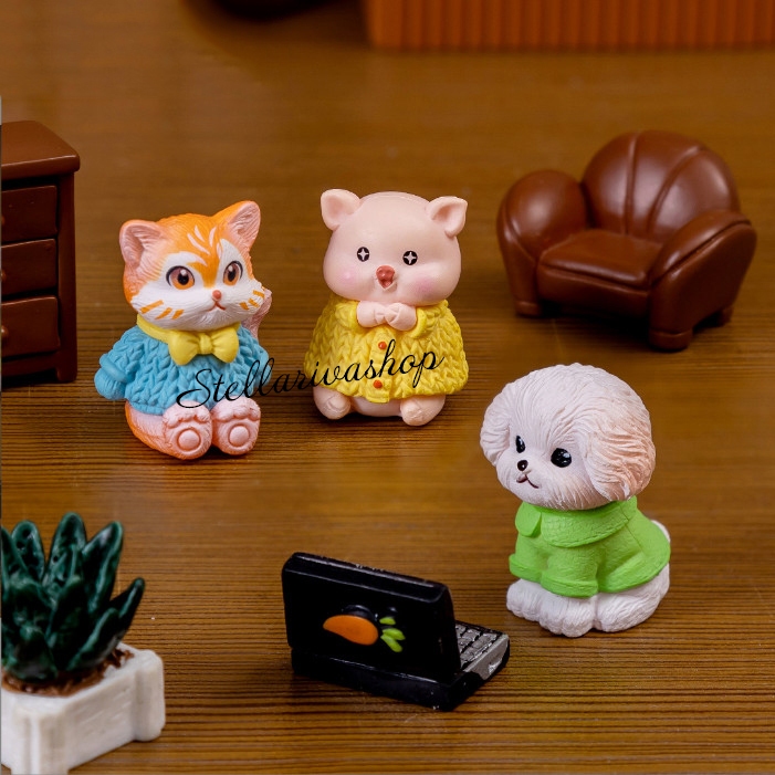 Tượng chó mèo lợn mặc áo ấm decor bàn học, trang trí terrarium, stellariva