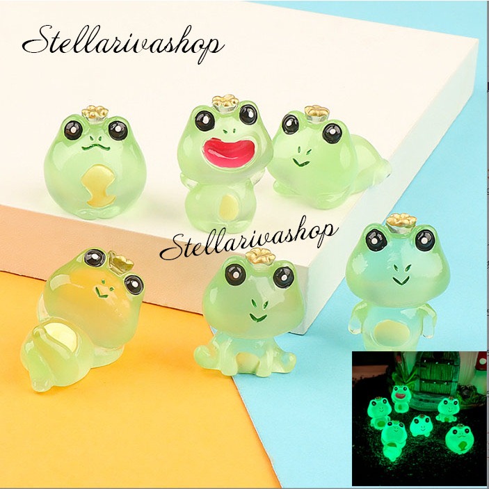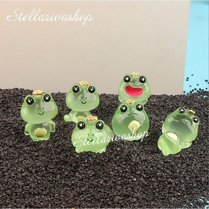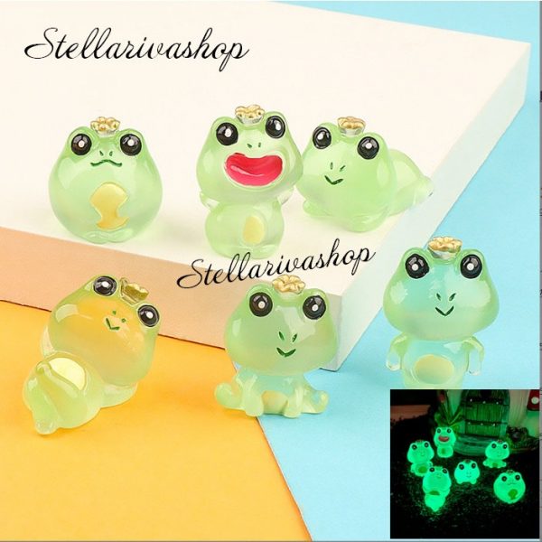 Tượng ếch xanh đội vương miện dạ quang decor bàn, stellariva