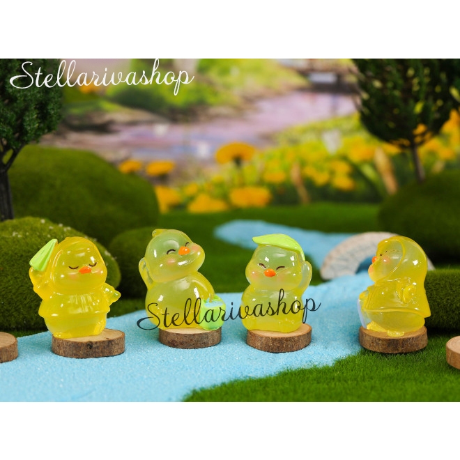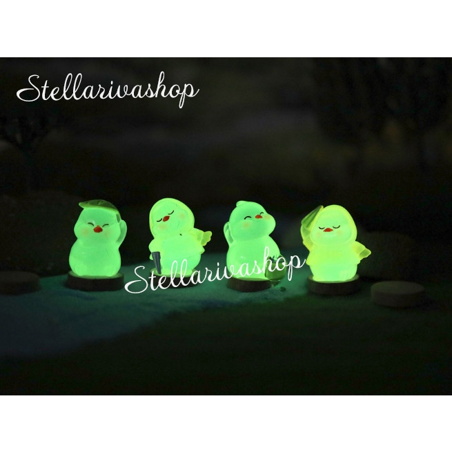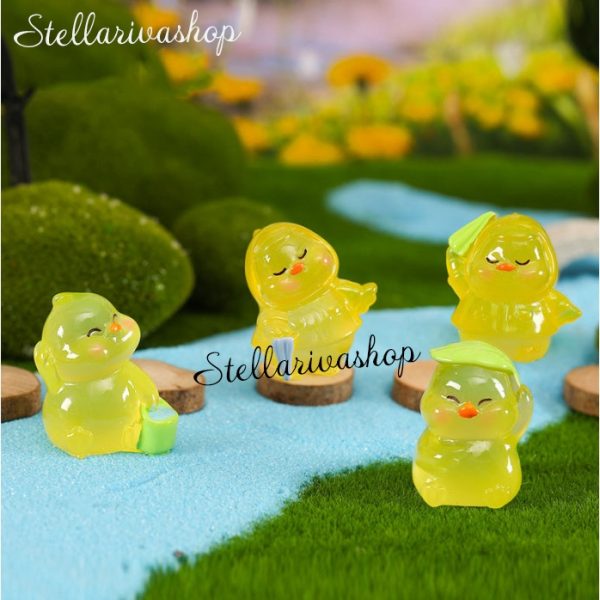 Tượng gà dạ quang cầm ô decor tiểu cảnh, trang trí bàn học