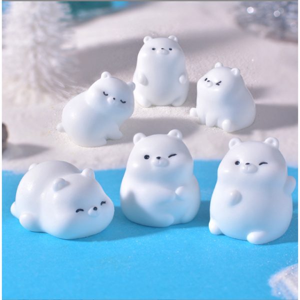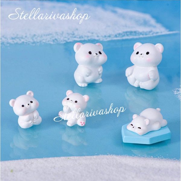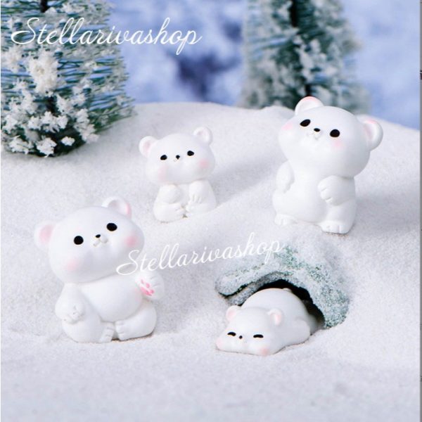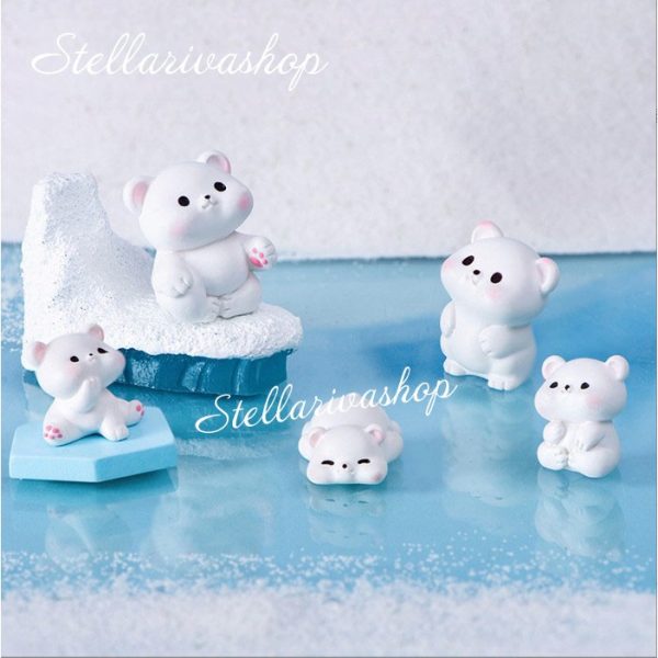 Tượng gấu trắng dễ thương trang trí bàn, decor tiểu cảnh