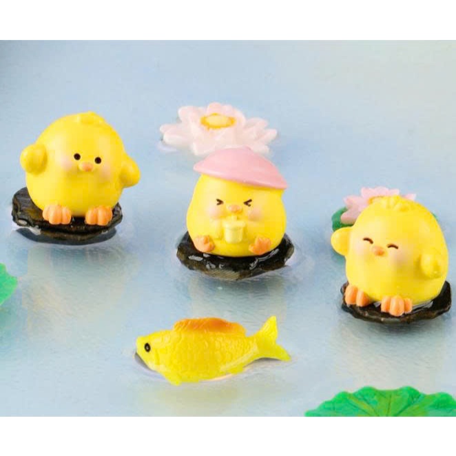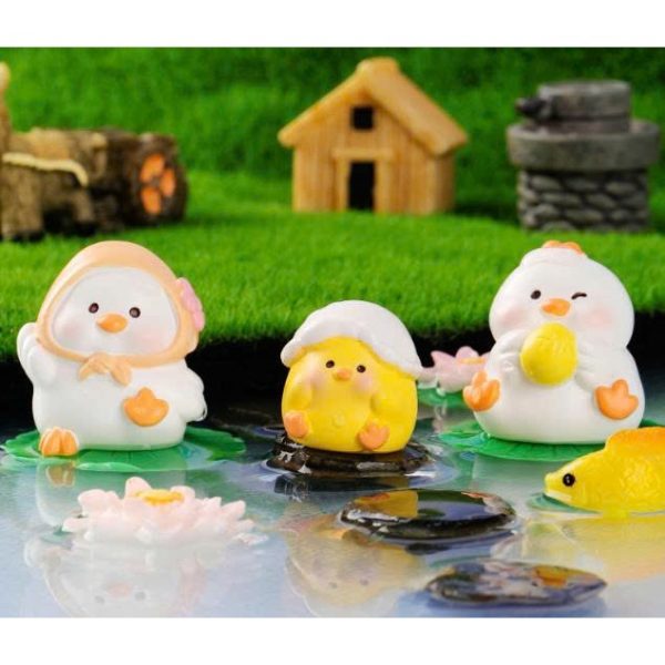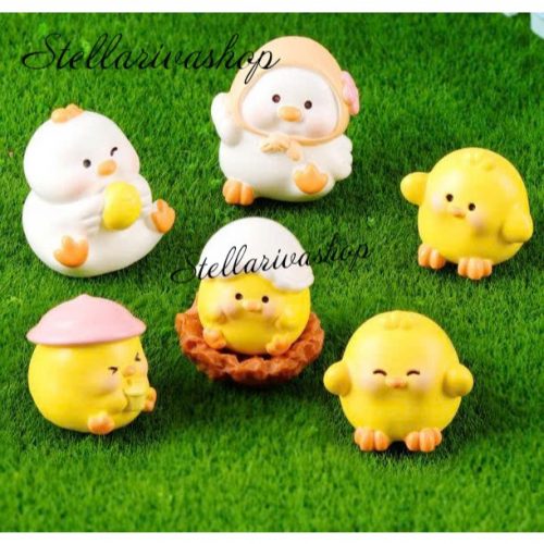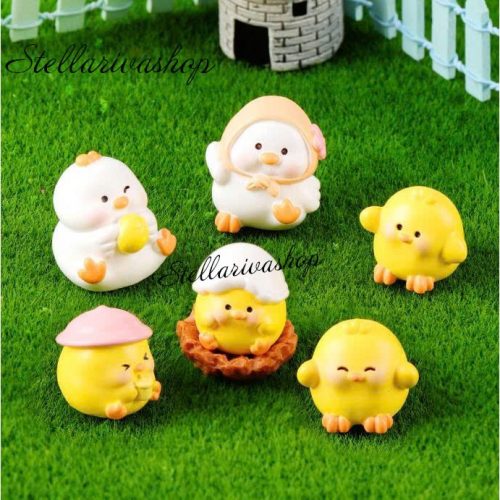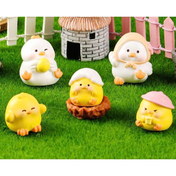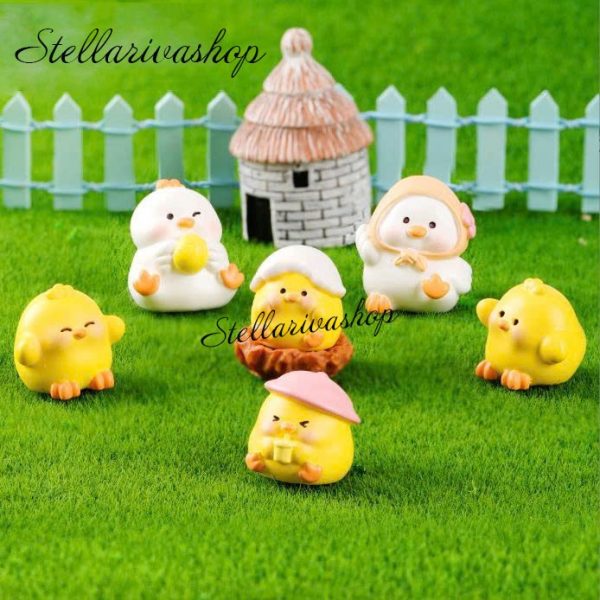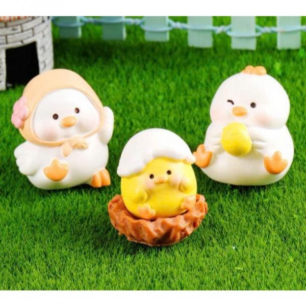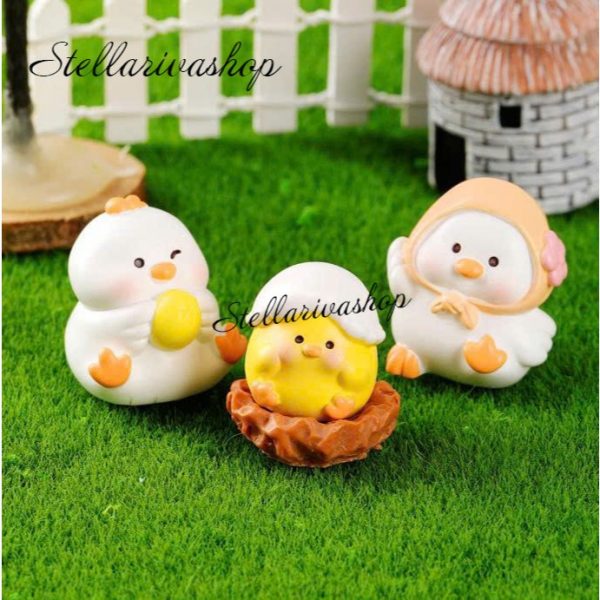 Tượng gia đình gà trắng vàng dễ thương trang trí bàn, decor kệ sách, stellariva