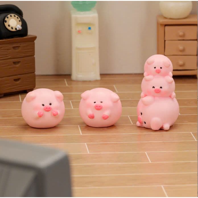 Tượng gia đình nhà heo trang trí terrarium, decor bàn học