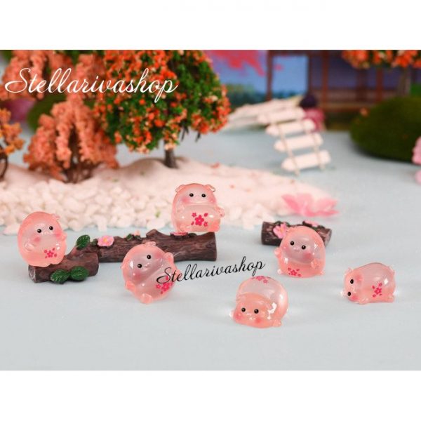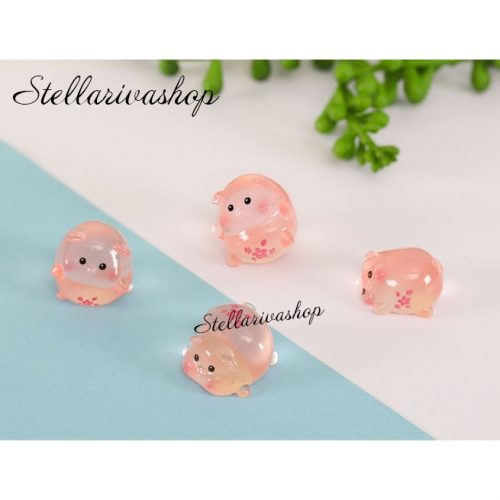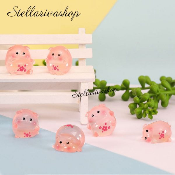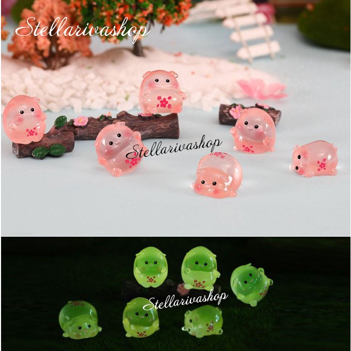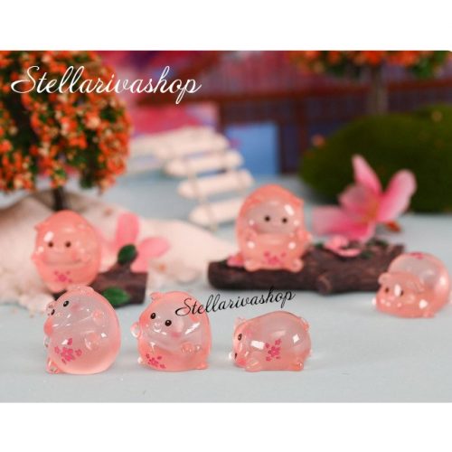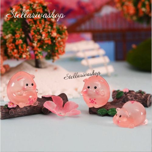 Tượng heo hồng phát sáng bụng anh đào dạ quang decor bàn học bàn làm việc, stellariva