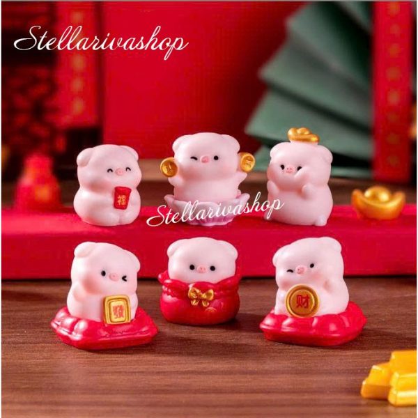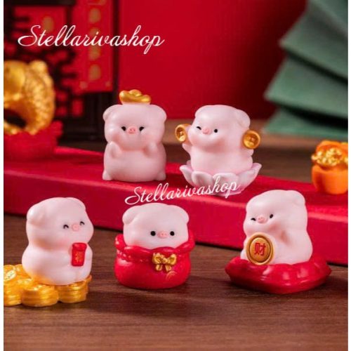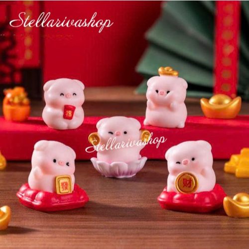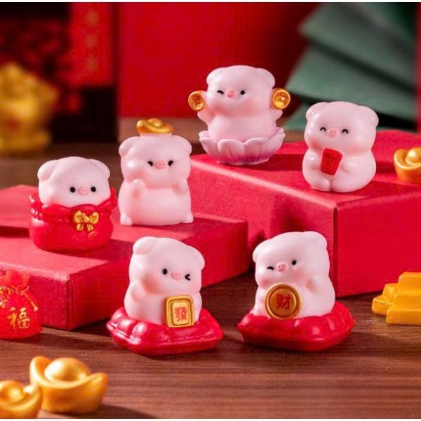 Tượng heo thần tài dễ thương decor bàn, trang trí mô hình tết