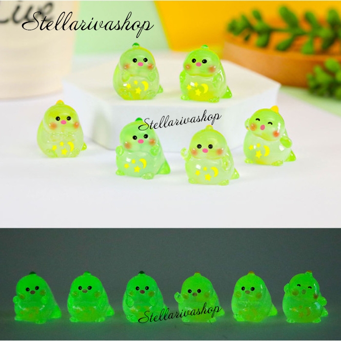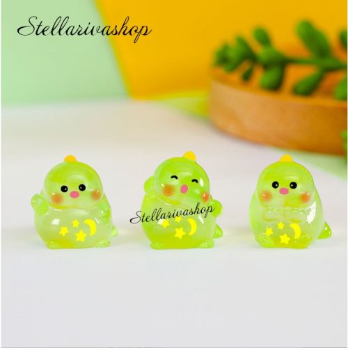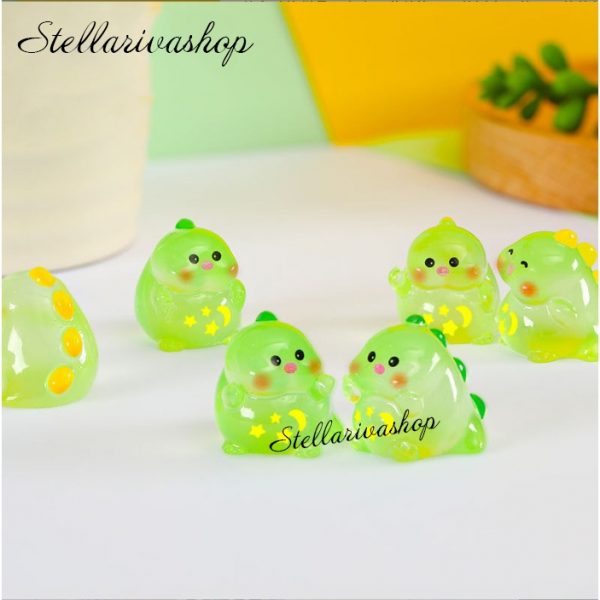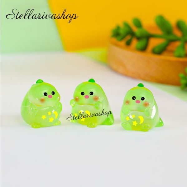 Tượng khủng long xanh ham ăn dạ quang decor tiểu cảnh, trang trí bàn học