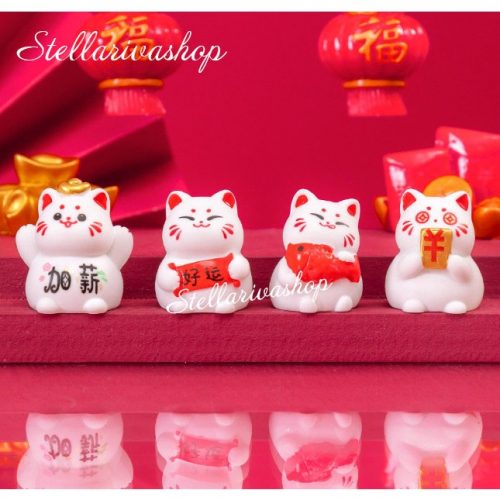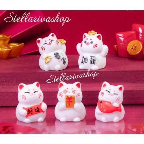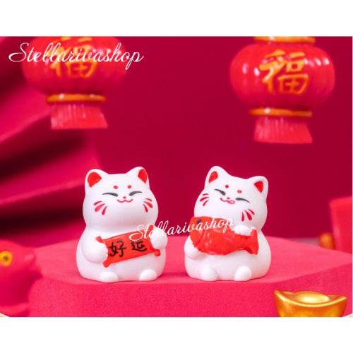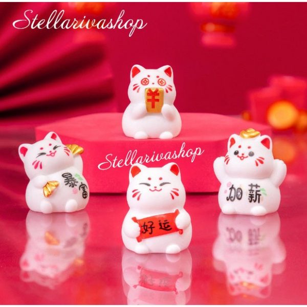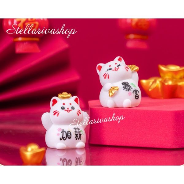 Tượng mèo may mắn kích thước nhỏ decor sen đá, chậu cây, bàn học, trang trí bánh kem