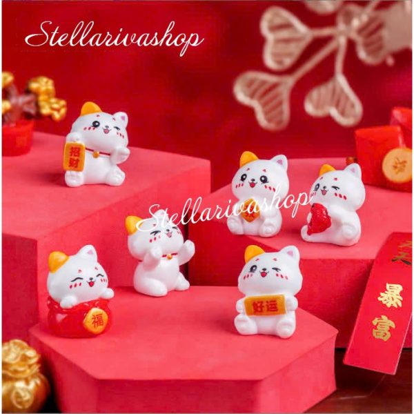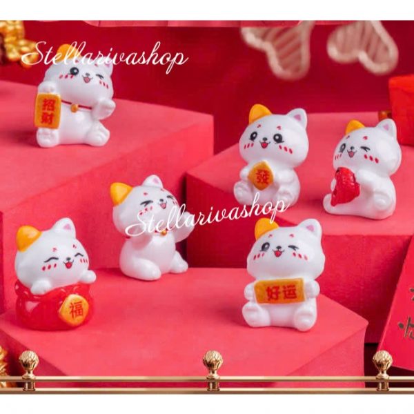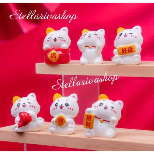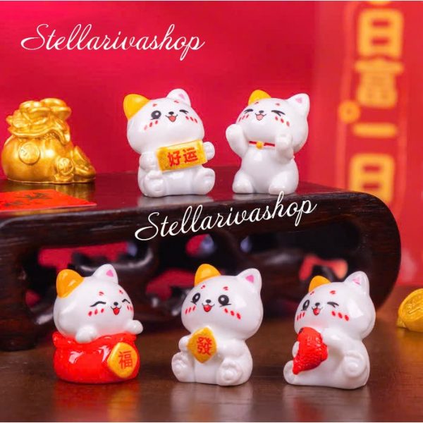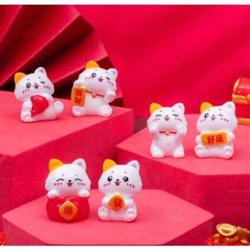 Tượng mèo thần tài may mắn mini để bàn, decor terrarium