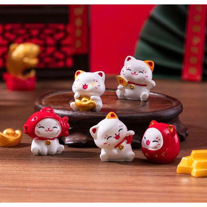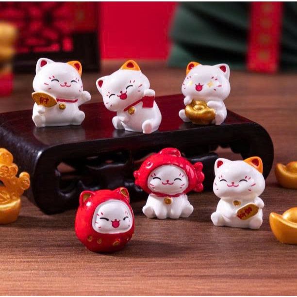 Tượng mèo thần tài minekineko dễ thương để bàn, decor terrarium, stellariva