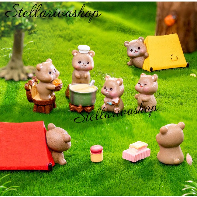 Tượng nhà gấu đi cắm trại decor bàn, trang trí tiểu cảnh, stellariva