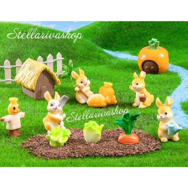 Tượng thỏ làm vườn decor tiểu cảnh, terrarium