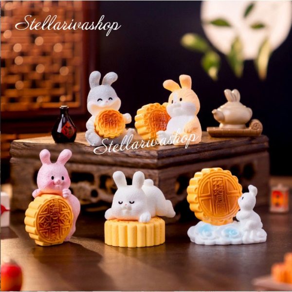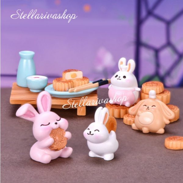Tượng thỏ trắng dự tiệc trung thu trang trí tiểu cảnh trung thu, terrarium