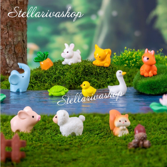Tượng thú nhỏ heo, cừu, voi, rắn, thỏ, vịt mini decor tiểu cảnh, terrarium