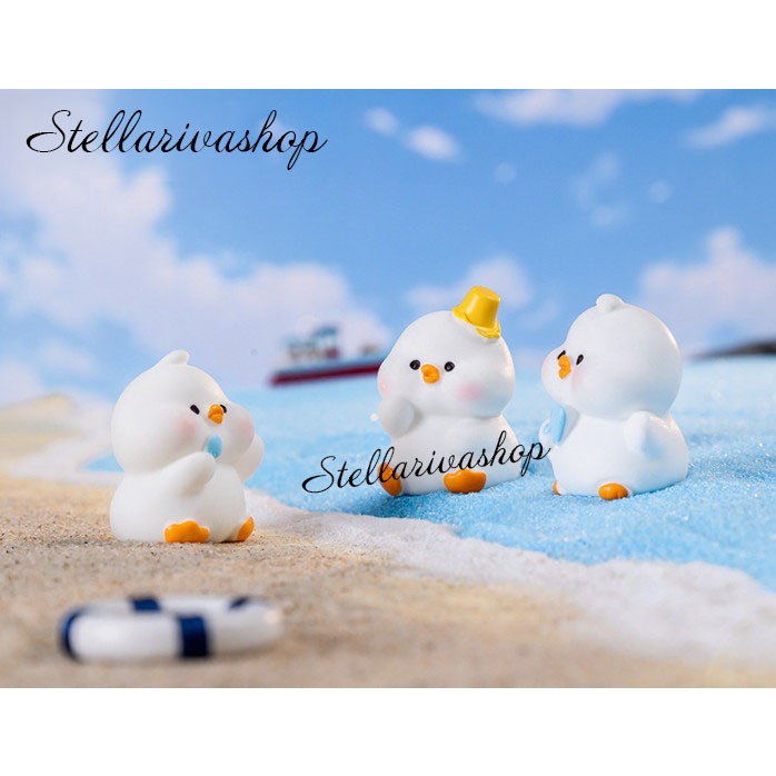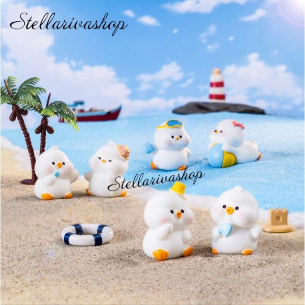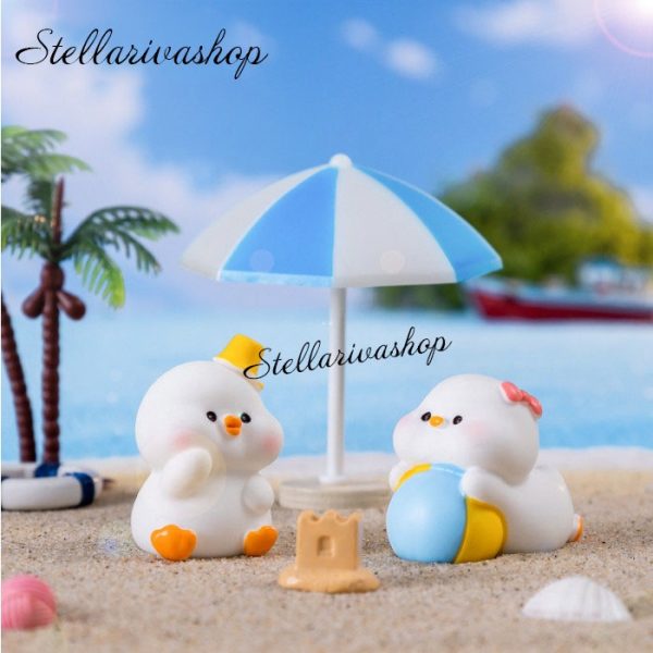 Tượng vịt béo đi chơi biển decor tiểu cảnh, terrarium bàn học